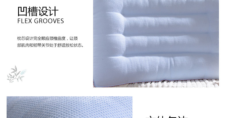 工藝:枕芯設計完全順應頸椎曲度,讓頸部肌肉和韌帶關節(jié)處于舒適放松狀態(tài)。