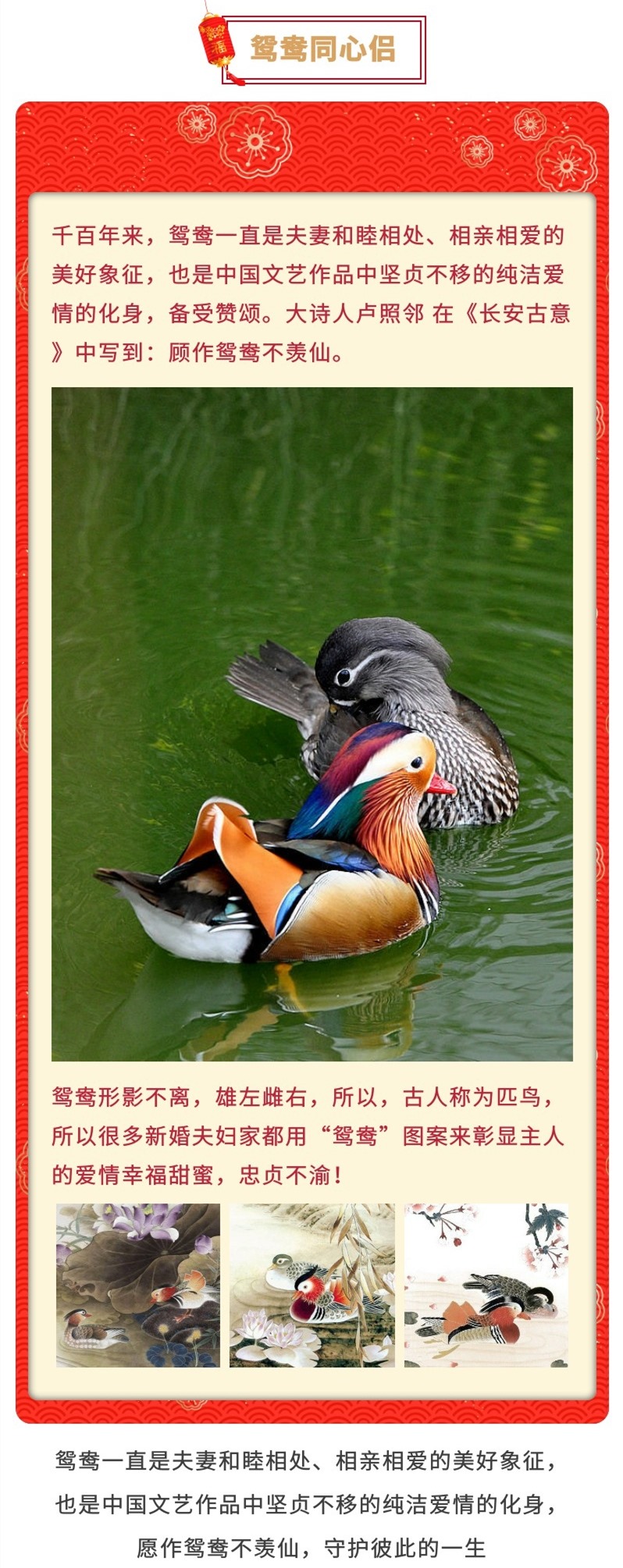 鴛鴦成雙水里游,和諧美好的畫面、忠貞不渝的愛情。