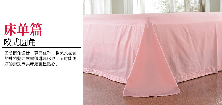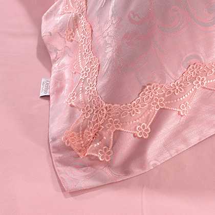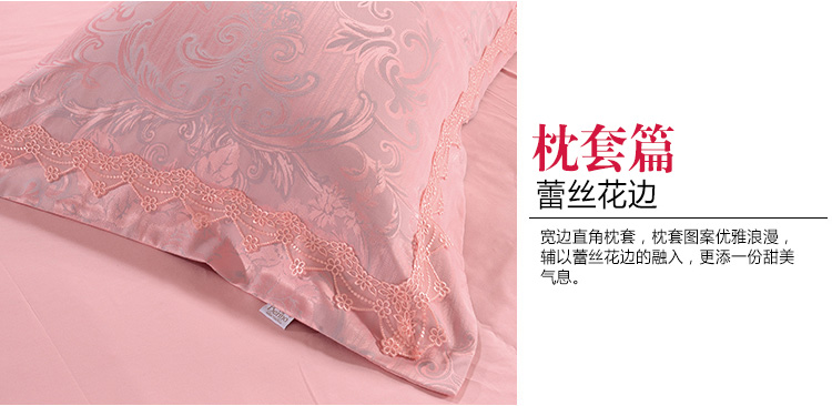 ?枕套:寬邊直角枕套,枕套圖案優(yōu)雅浪漫,輔以蕾絲花邊的融入,更添一份甜美氣息。