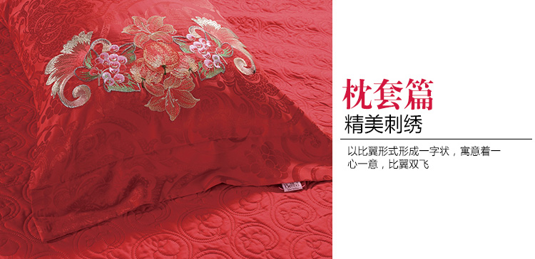 第一、產(chǎn)品的枕套采用圖案簡單,以比翼形式形成一字狀,寓意著新人一心一意,比翼雙飛。