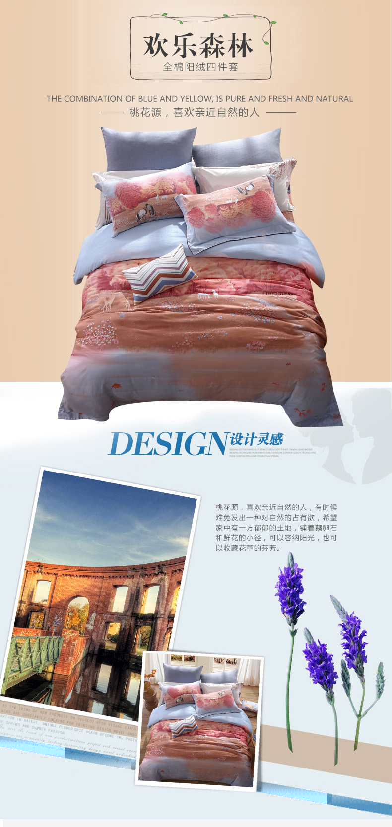 色彩生活,寶縵家紡!今天為大家推薦的是寶縵2016年秋冬比薩系列產(chǎn)品“歡樂森林”, 這款產(chǎn)品A版采用陽絨面料,純棉天然環(huán)保,貼身柔軟舒適,質(zhì)感豐厚!