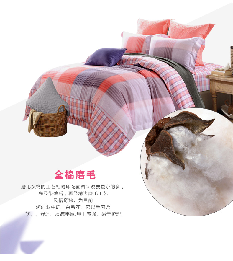 第一:純棉陽絨也是磨毛的一種,面料為100%全棉材質(zhì),并采用新型的織造工藝,比普通磨毛的布料稍厚,手感更加細膩更柔軟,有種類似羊絨的質(zhì)感,也有類似羊絨的保暖效果,被官方譽為“被窩里的小太陽”。