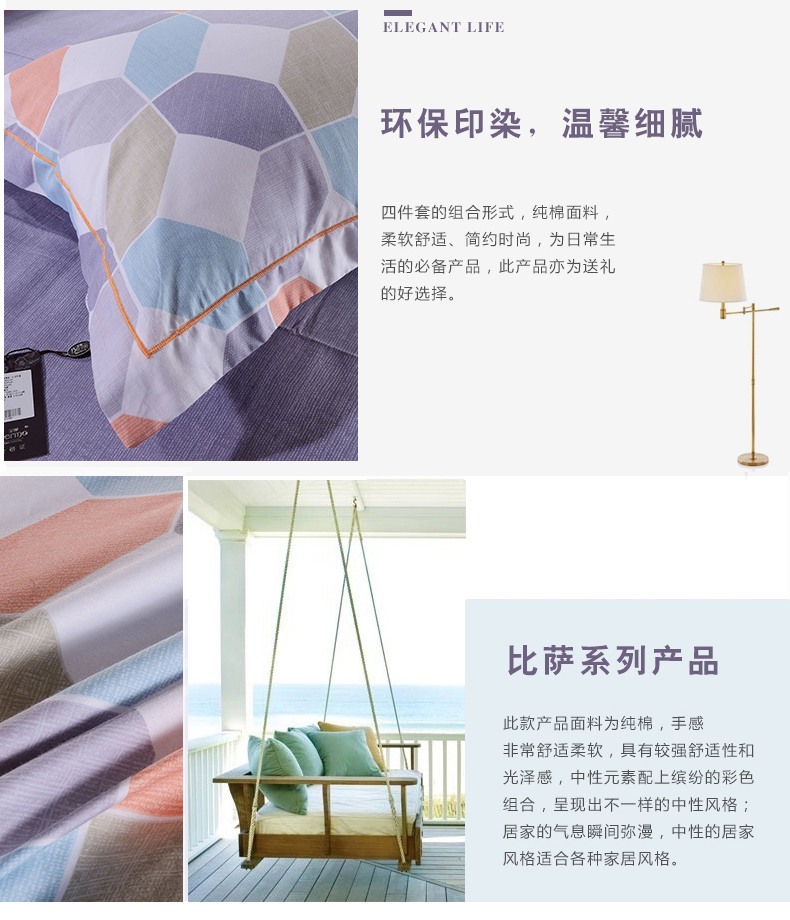 面料:此款產(chǎn)品采用100%純棉面料,手感非常舒適柔軟,具有較強(qiáng)舒適性和光澤感,同時(shí)它們還具有透氣,保暖、吸濕、耐熱、耐堿、衛(wèi)生等功效。