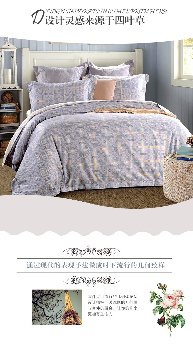 設(shè)計靈感來源于四葉草,通過現(xiàn)代的表現(xiàn)手法做成時下流行的幾何紋樣,使整套產(chǎn)品顯時尚大氣。