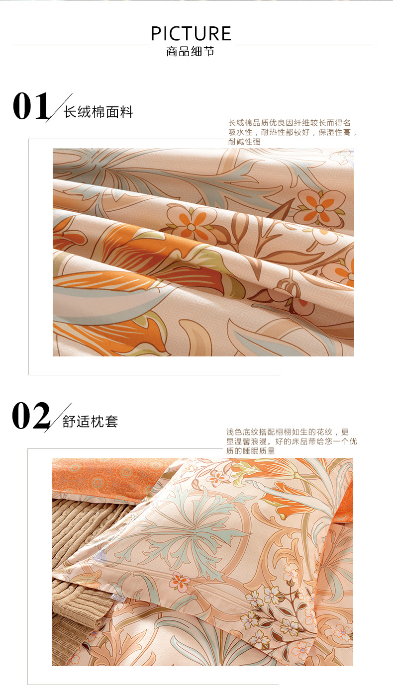 面料: 此款產(chǎn)品采用長(zhǎng)絨棉面料,懸垂感好,具有絲綢般的光滑。面料色牢度高,久洗不褪色。耐磨耐用,抗皺性好,不易起球。透氣排濕性好,具有普通面料5倍以上的透氣性。