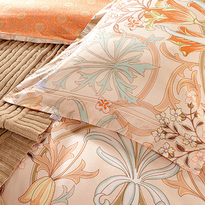 莫里斯圖案強(qiáng)調(diào)裝飾性,通常采取對(duì)稱結(jié)構(gòu),形成了嚴(yán)謹(jǐn),樸素,莊重的風(fēng)格。多以植物為題材,頗有自然氣息并反映出一種歐式的田園風(fēng)味,這是“順承自然”主張的具體體現(xiàn)。