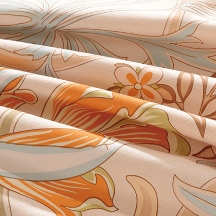 花型:莫里斯在棉印織物、壁紙的圖案設(shè)計(jì)以掛毯設(shè)計(jì)、刺繡等面皮設(shè)計(jì)領(lǐng)域、表現(xiàn)出獨(dú)特的設(shè)計(jì)理念和思維。