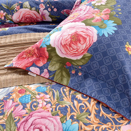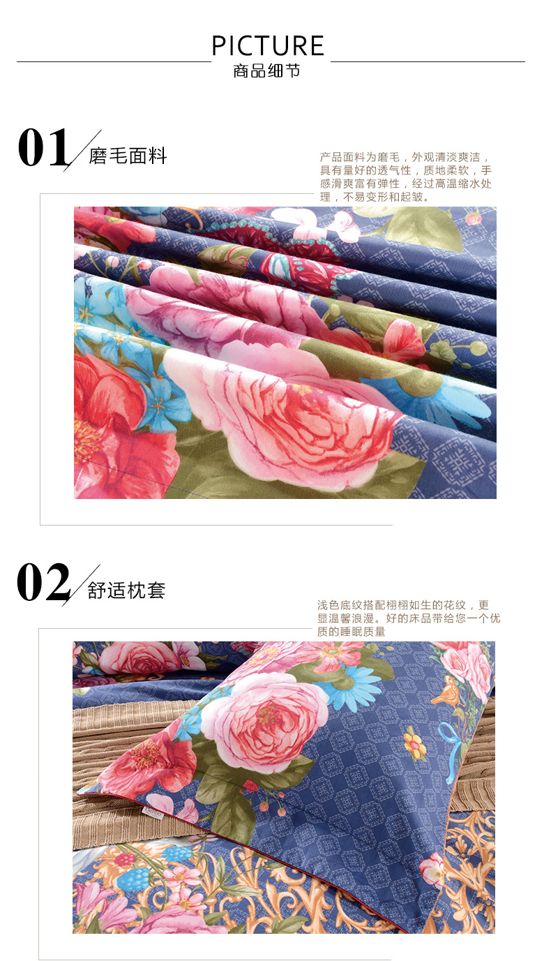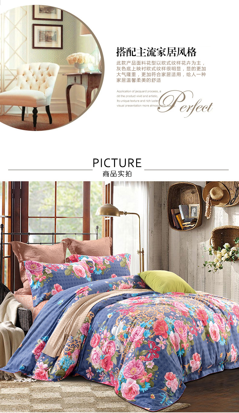 F、此款為單四件組合,舒適的高檔精梳棉面料,優(yōu)雅的花卉與浪漫的西式紋樣完美結(jié)合,為您的臥室?guī)聿灰粯拥乃囆g(shù)氣息。