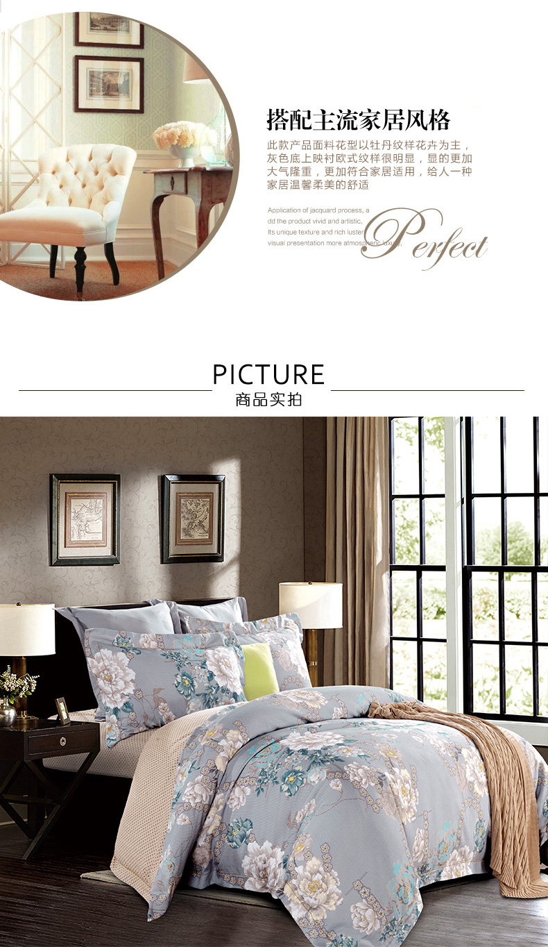 花型:牡丹寓意著高潔、端莊秀雅、儀態(tài)萬千、國色天香、守信的人;并寓意著做人的風格:王者風范,以及人對美好事物的追求和向往;大朵的牡丹花配以淺灰色的底色更顯得沉穩(wěn),大方典雅。