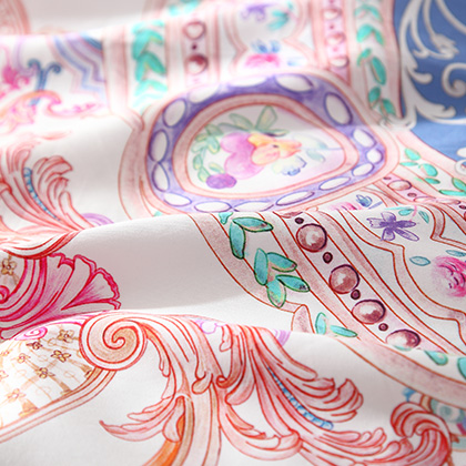 設(shè)計(jì)創(chuàng)意:燦爛的花卉與巴洛克卷草紋樣交相輝映,映襯著文藝復(fù)興時(shí)期雍容華貴的藝術(shù)氣息。