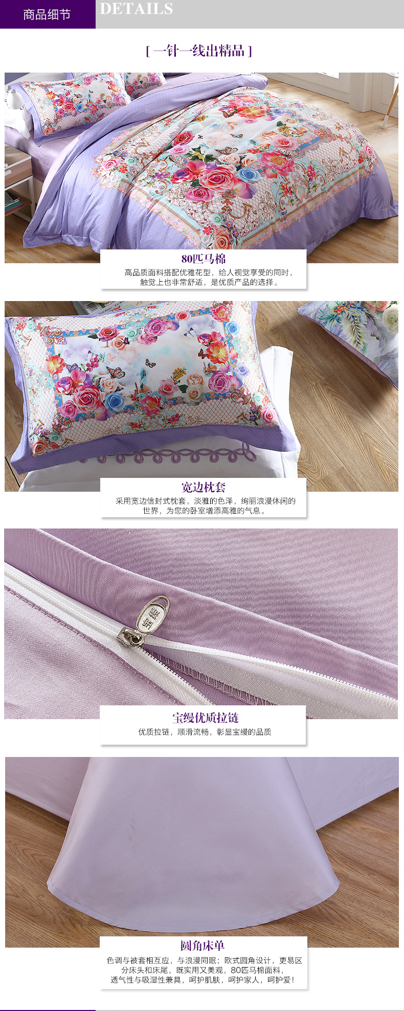 產(chǎn)品明細(xì):被套*1、床單*1、枕套*2