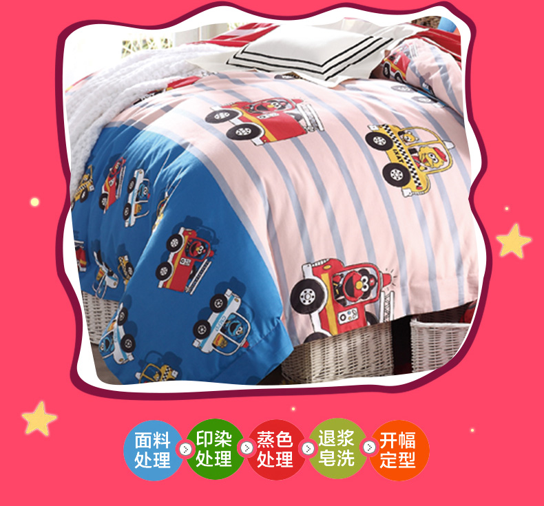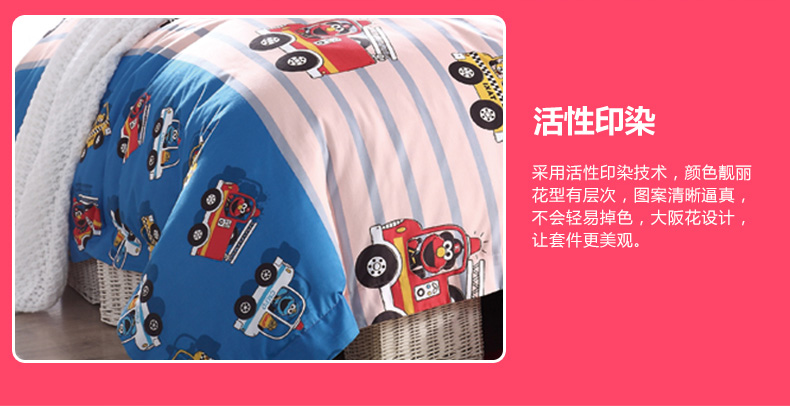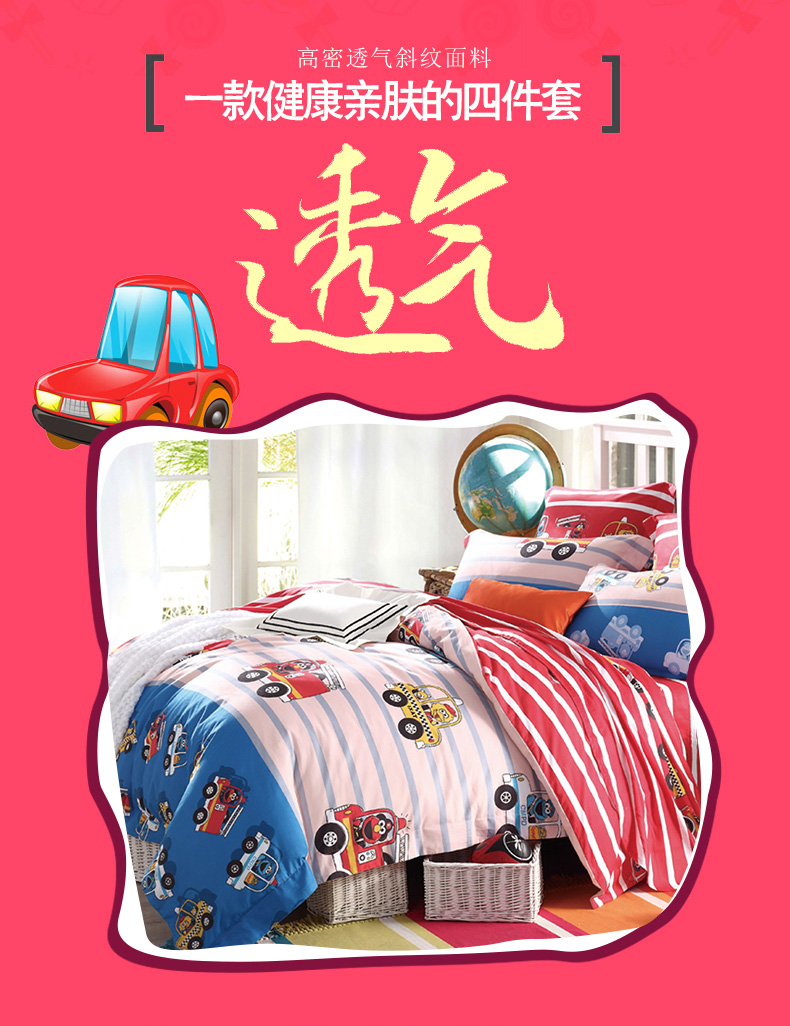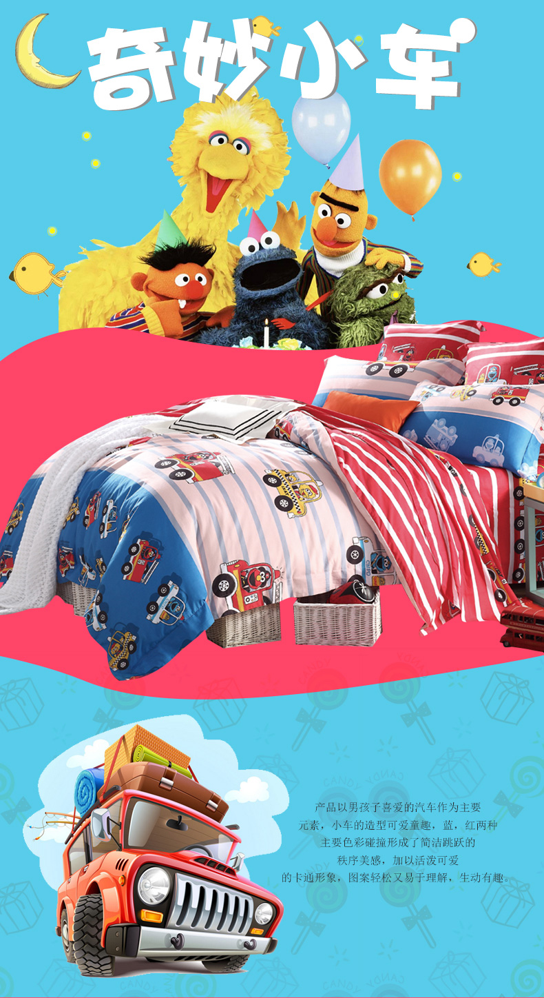 花型:汽車元素配上充滿活力的彩色,完全釋放兒童活潑好奇的天性,是兒童臥室的必備產(chǎn)品。