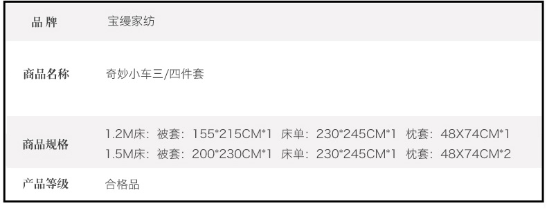 組合:單三件/單四件的組合形式,純棉面料,柔軟舒適、生動活潑,為日常生活的必備產(chǎn)品,此產(chǎn)品亦可作為送禮。