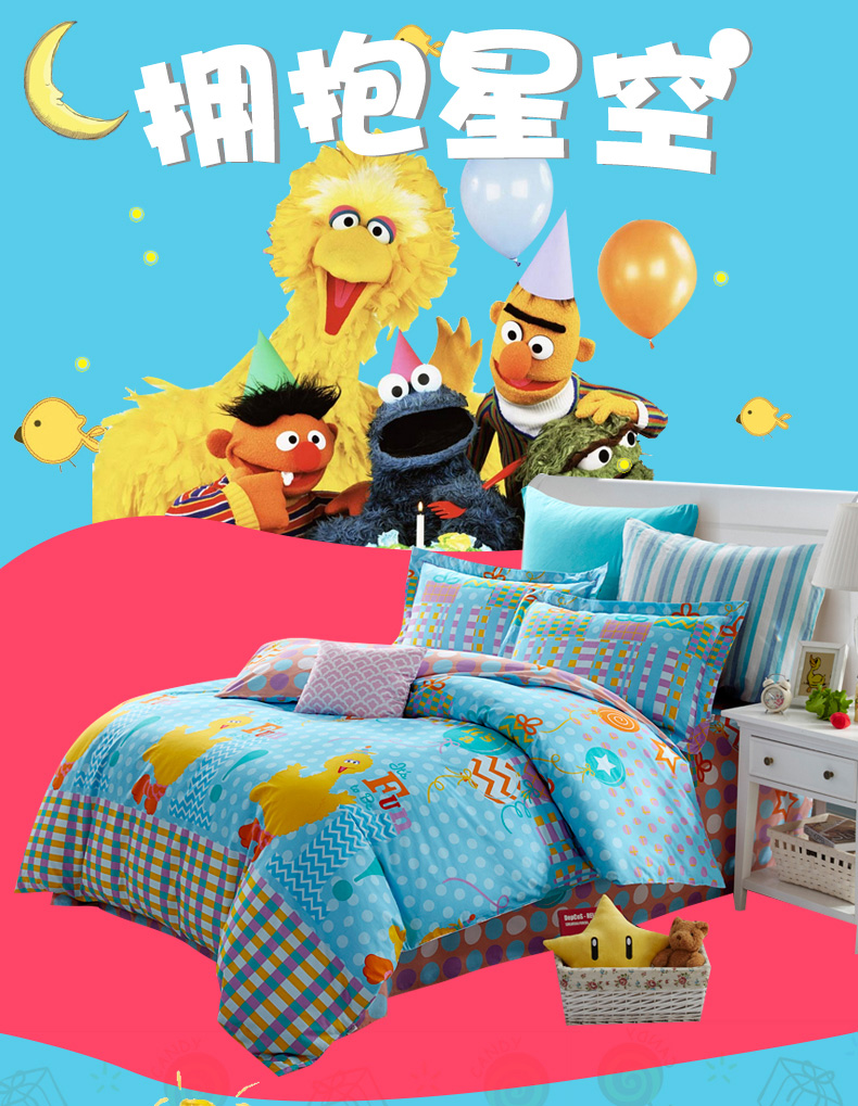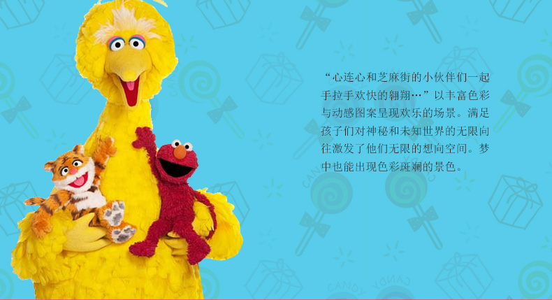 設(shè)計靈感:“心連心和芝麻街的小伙伴們一起手拉手歡快的翱翔…”以豐富色彩與動感圖案呈現(xiàn)歡樂的場景。滿足孩子們對神秘和未知世界的無限向往激發(fā)了他們無限的想向空間。夢中也能出現(xiàn)色彩斑斕的景色。