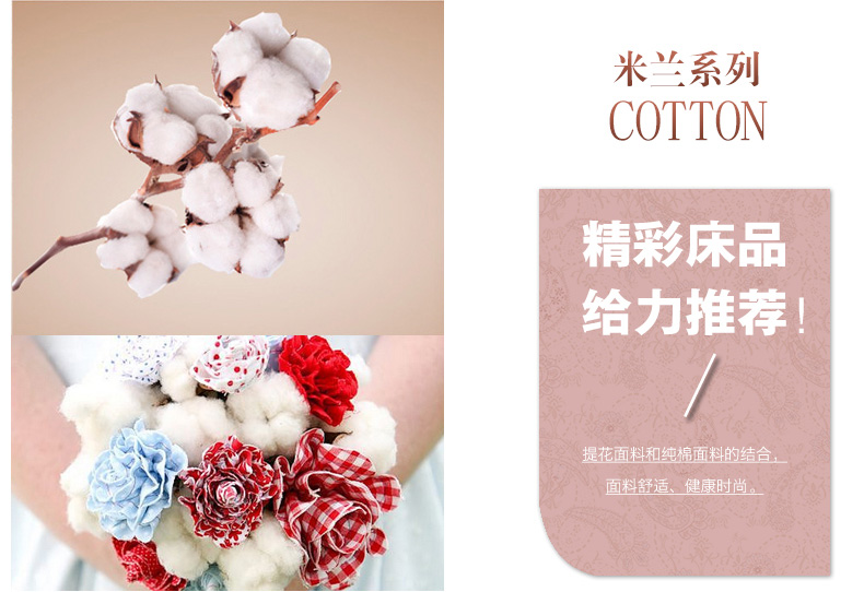 工藝:提花面料和純棉面料的結(jié)合,柔軟舒適、奢華時尚。