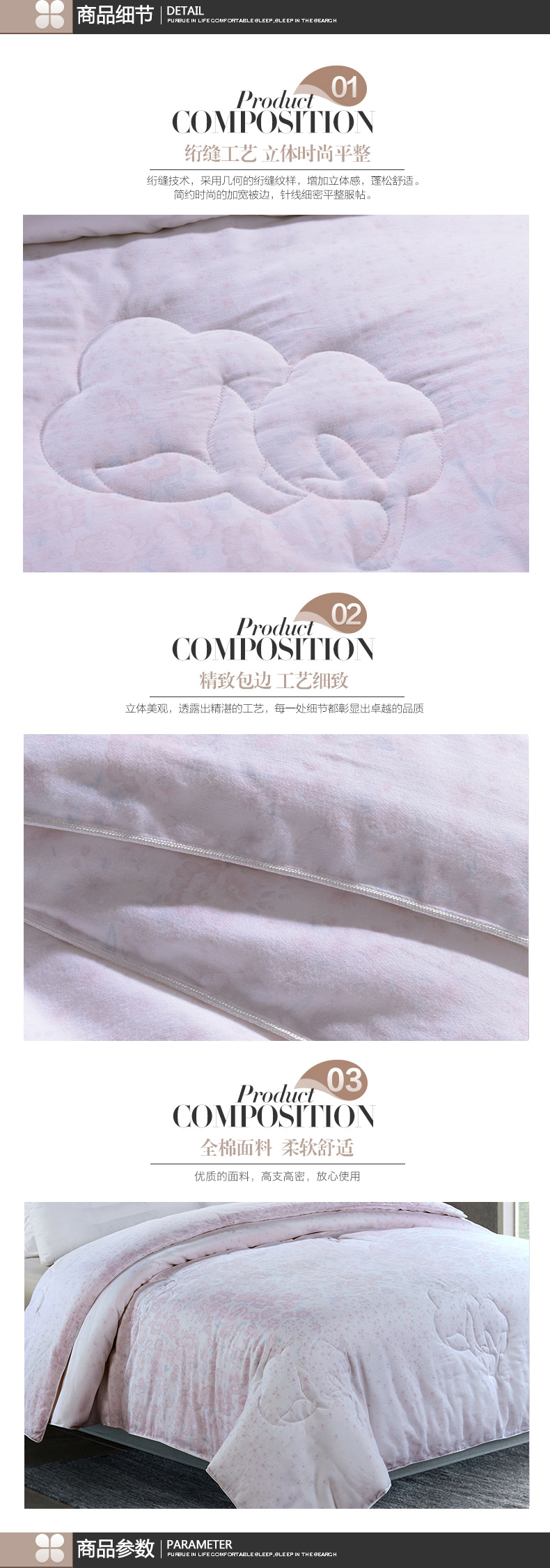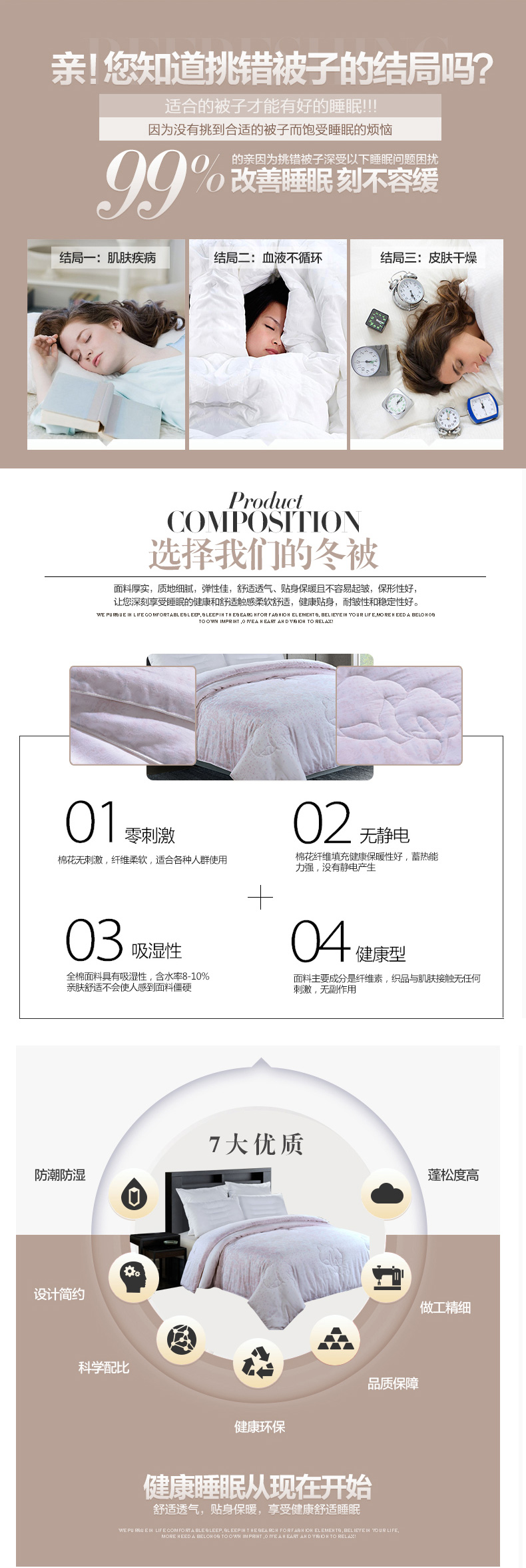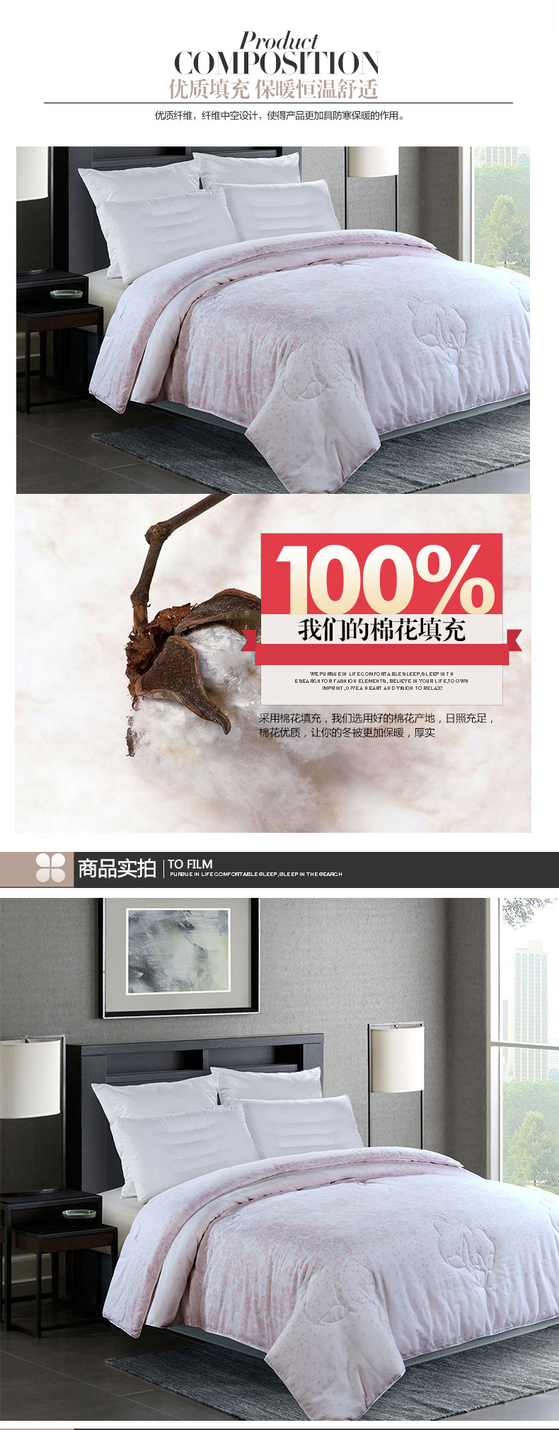 填充物:100%元絨棉 1.4kg/2kg/2.4kg