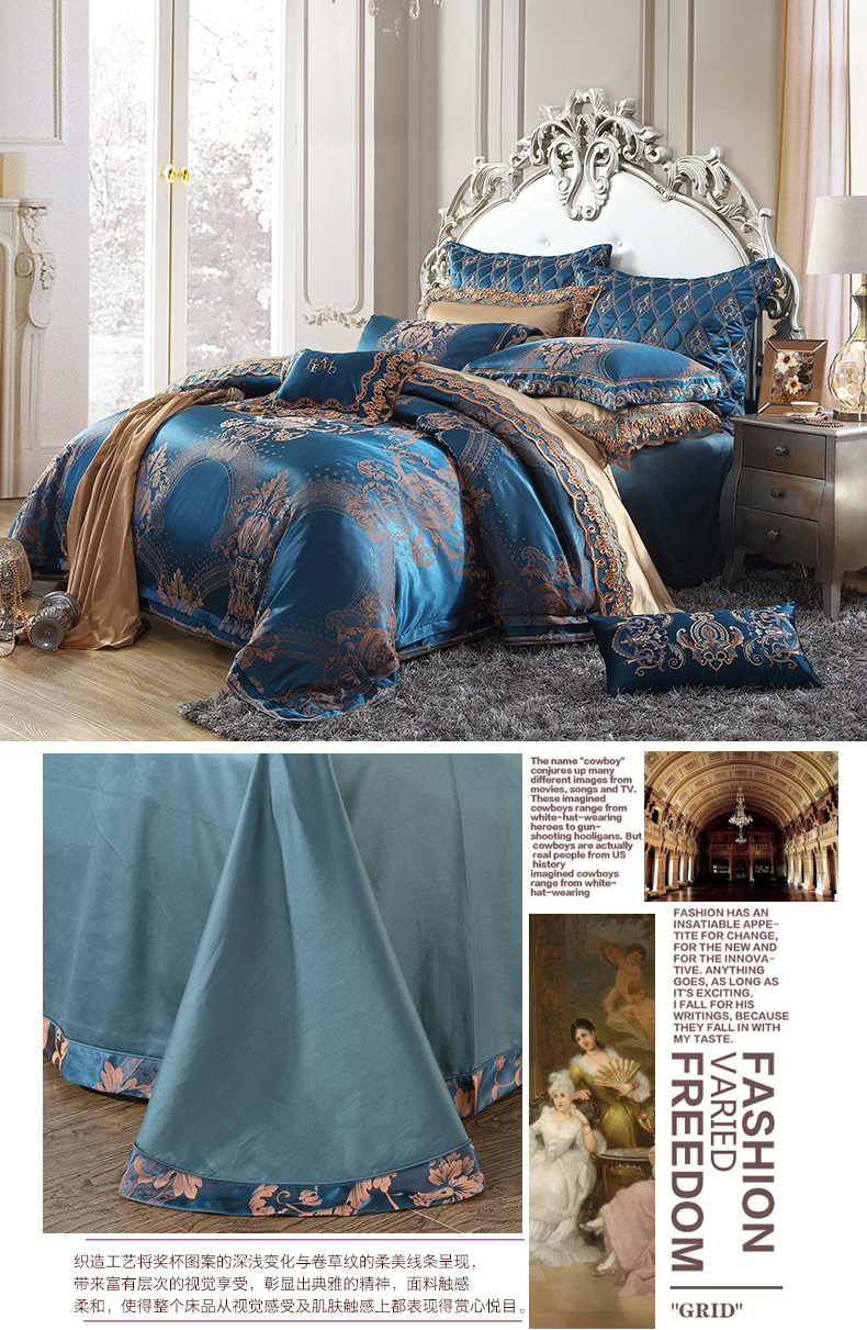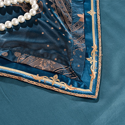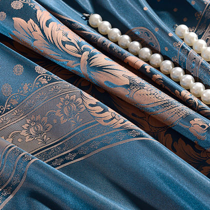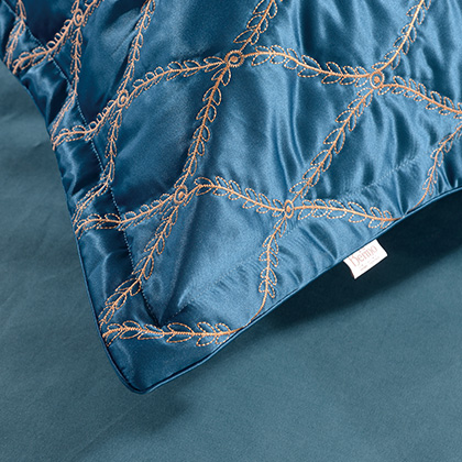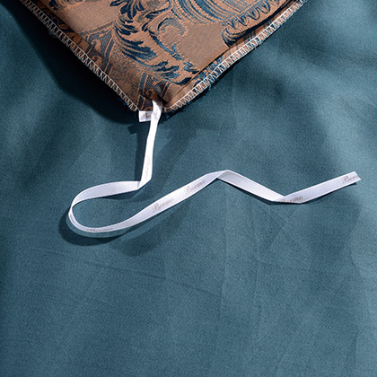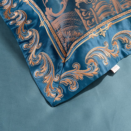 產(chǎn)品選用特殊的織造工藝將獎杯圖案的深淺變化與卷草紋的柔美線條完美呈現(xiàn),帶來富有層次的視覺享受,彰顯出典雅的精神,面料觸感柔和,使得整個床品從視覺感受及肌膚觸感上都表現(xiàn)得賞心悅目。