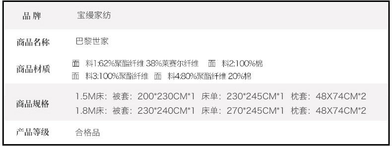 第三:貼身舒適全棉,被套B面以及床單都采用高支高密純棉面料,耐用、貼身伴您安心入睡!