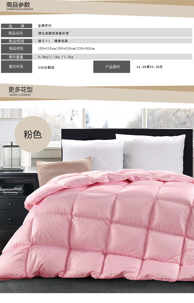 填充物:90%白鵝絨 0.8kg/1.1kg /1.3kg