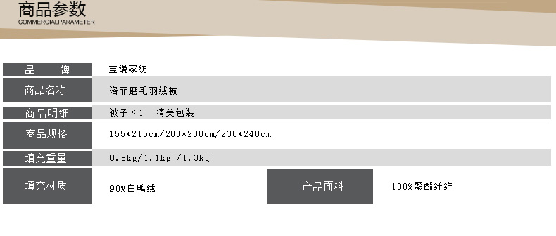 填充物:90%白鴨絨 0.8kg/1kg /1.2kg