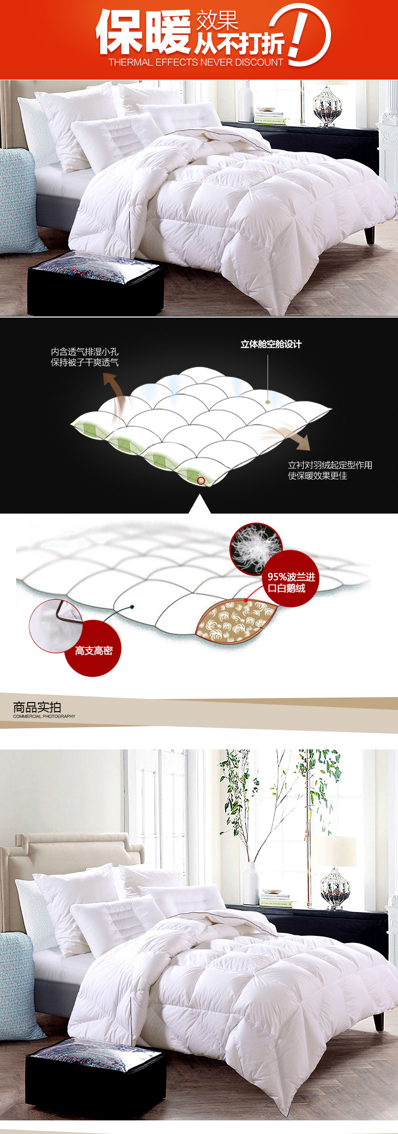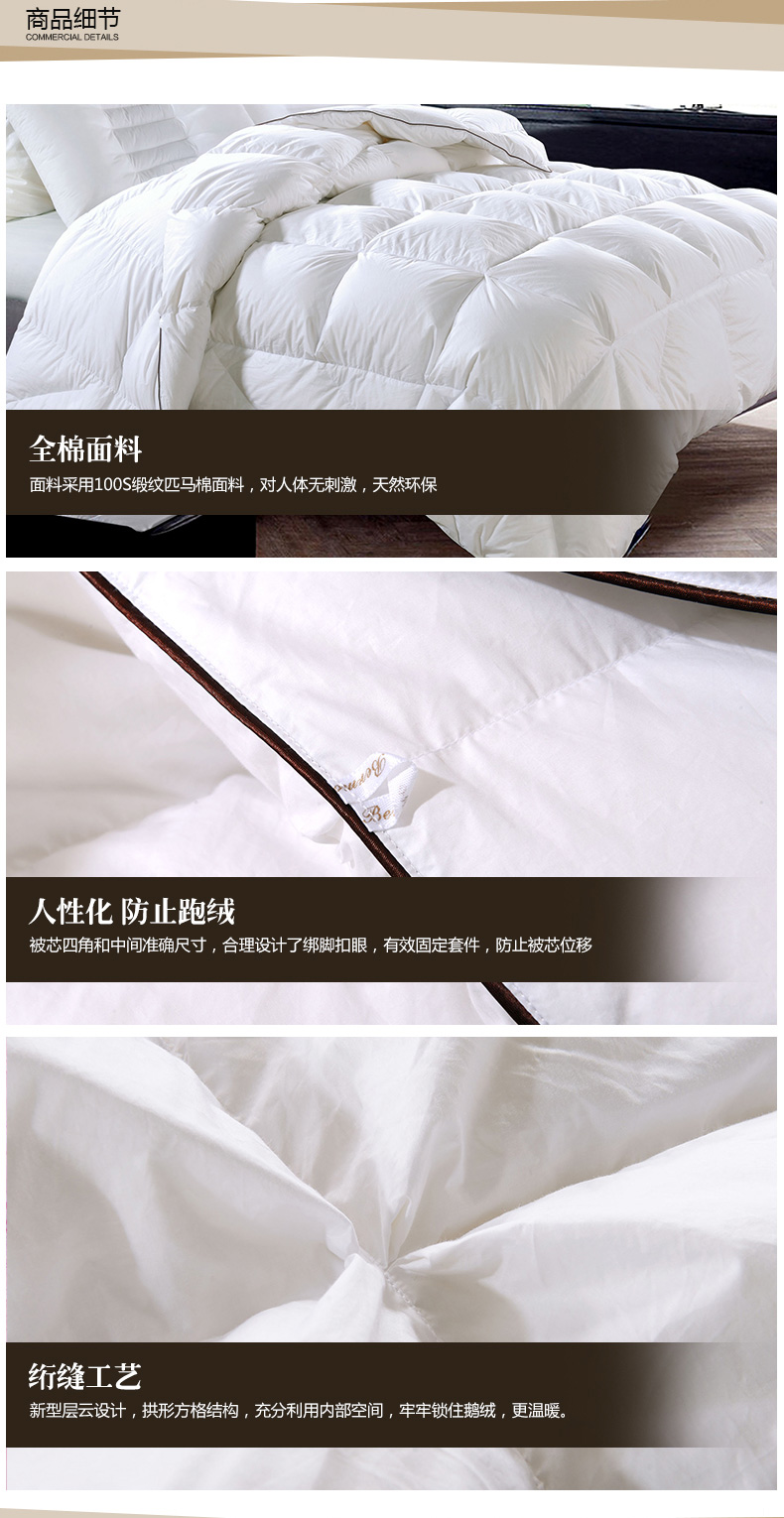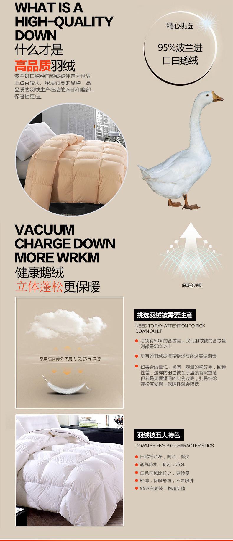 填充物:95%波蘭進(jìn)口白鵝絨1.1kg/1.3kg