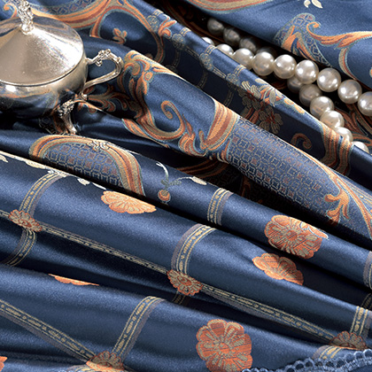 第三:提花面料的制造工藝復(fù)雜。具有質(zhì)地柔軟、細(xì)膩、爽滑等獨(dú)特觸感,光澤度好,懸垂性及透氣性好,色牢度高。大提花面料的圖案幅度大且精美,色彩層次分明立體感強(qiáng)。