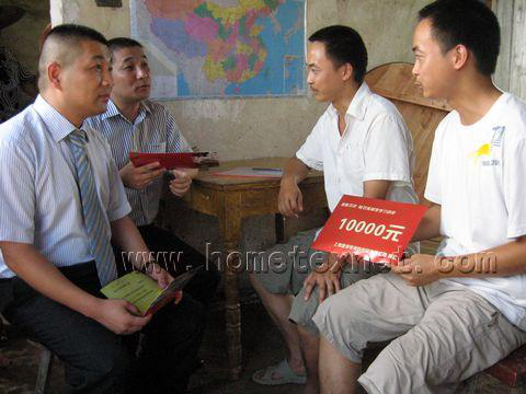 8月23日,他們一行人親自來到雙洪、雙泳家,帶來一萬元現(xiàn)金和兩套寶縵產(chǎn)品。四人一見面就有似曾相識之感,或許是因為他們都是孿生兄弟、都姓陸,都有過貧窮的經(jīng)歷。這使得他們心與心更近、情與情更切。