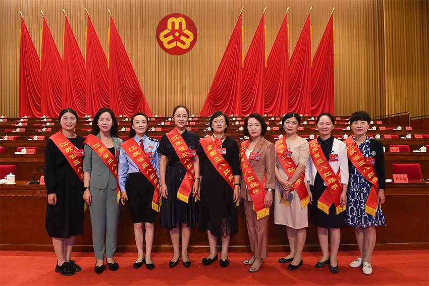 △陸萍女士與江蘇所有紅旗手合影留念(六排右六)