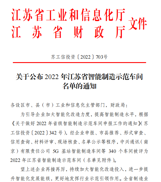 “江蘇寶縵家紡科技有限公司-床上用品智能制造吊掛車間”成功入選“江蘇省智能制造示范車間”稱號(hào)!于江蘇省工業(yè)和信息化廳及江蘇省財(cái)政廳公布的“2022 年江蘇省智能制造示范車間名單”中展示。