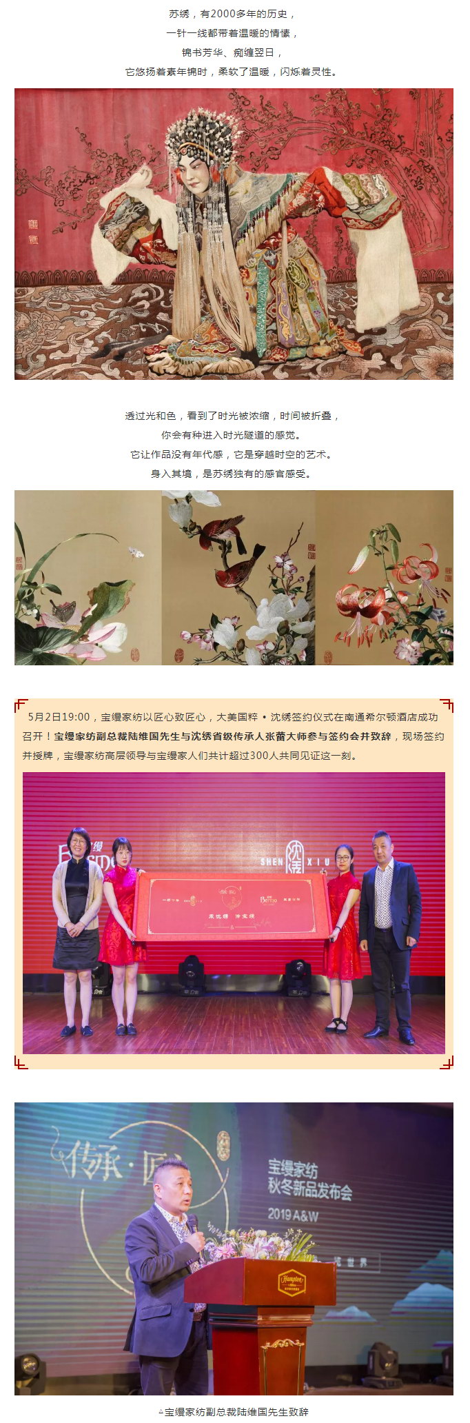 「傳承 · 匠心」寶縵家紡&國粹沈繡正式簽約!